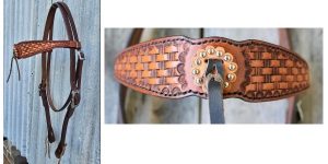 Blue Roan Ropes & Tack – Dark Horse Collection – Wide Brow Basket Stamped Headstall Goldmine