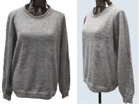 Alpaca Shop AustraliaAlpaca Round-Neck Classy Soft Jumper Raglan Sleeves - Sky Blue Melange - Knit round neck sweater featuring long sleeves, whit a roller appliqué on the collar neck, and ribbed trims, and elegant raglan sleeves.
