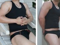 Aussie Togs – Slide-able & Adjustable Front & Back Briefs - Designed for your comfort and freedom. Wear as full coverage or slide front & back or either, wear it a normal brief. Slide-able front and back for him totally adjustable! Wide comfy side strings that adjust. No hip...Aussie Togs – Tie Sides Slim Cut Briefs